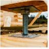 Регулировочная усадочная опора (винтовой домкрат, компенсатор усадки) — это металлическая регулируемая опора, которая устанавливается под неподвижными конструктивными элементами (например, под вертикальными столбами, колоннами) и позволяет регулировать их высоту по мере усушки и оседания древесины.